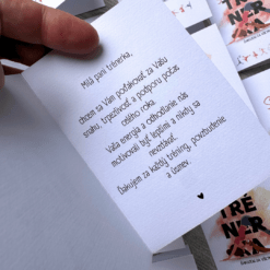 Kartičku môžete priložiť k darčeku, ku kvetom alebo bonboniere.