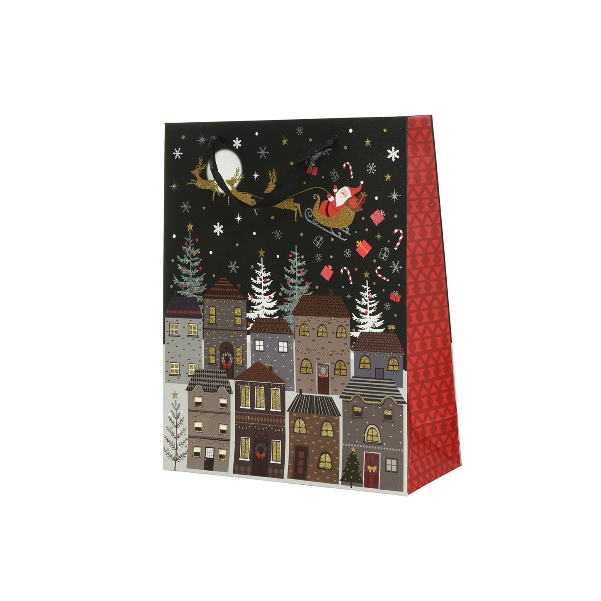 Darčeková taška – vianočná – VILLAGE – 32x26x10 cm