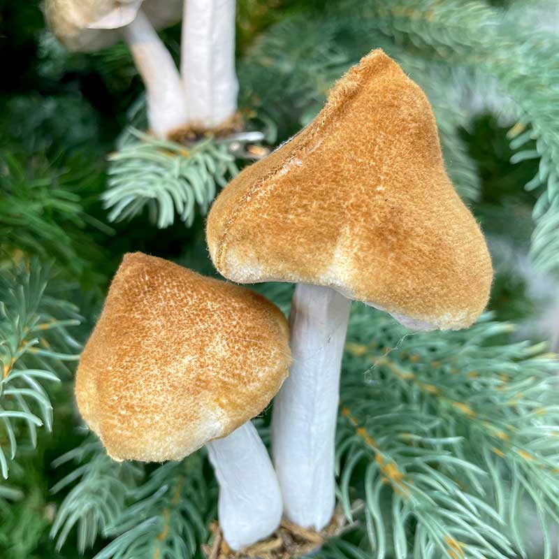 Dekoračný hríb na spone 9x7x5 cm žltohnedý