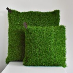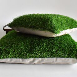 Originálny vankúš z umelej trávy je nevšednou, veľmi štýlovou dekoráciou záhradných terás.