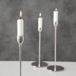 Kovový svietnik na kónickú sviečku SILVER 28 cm