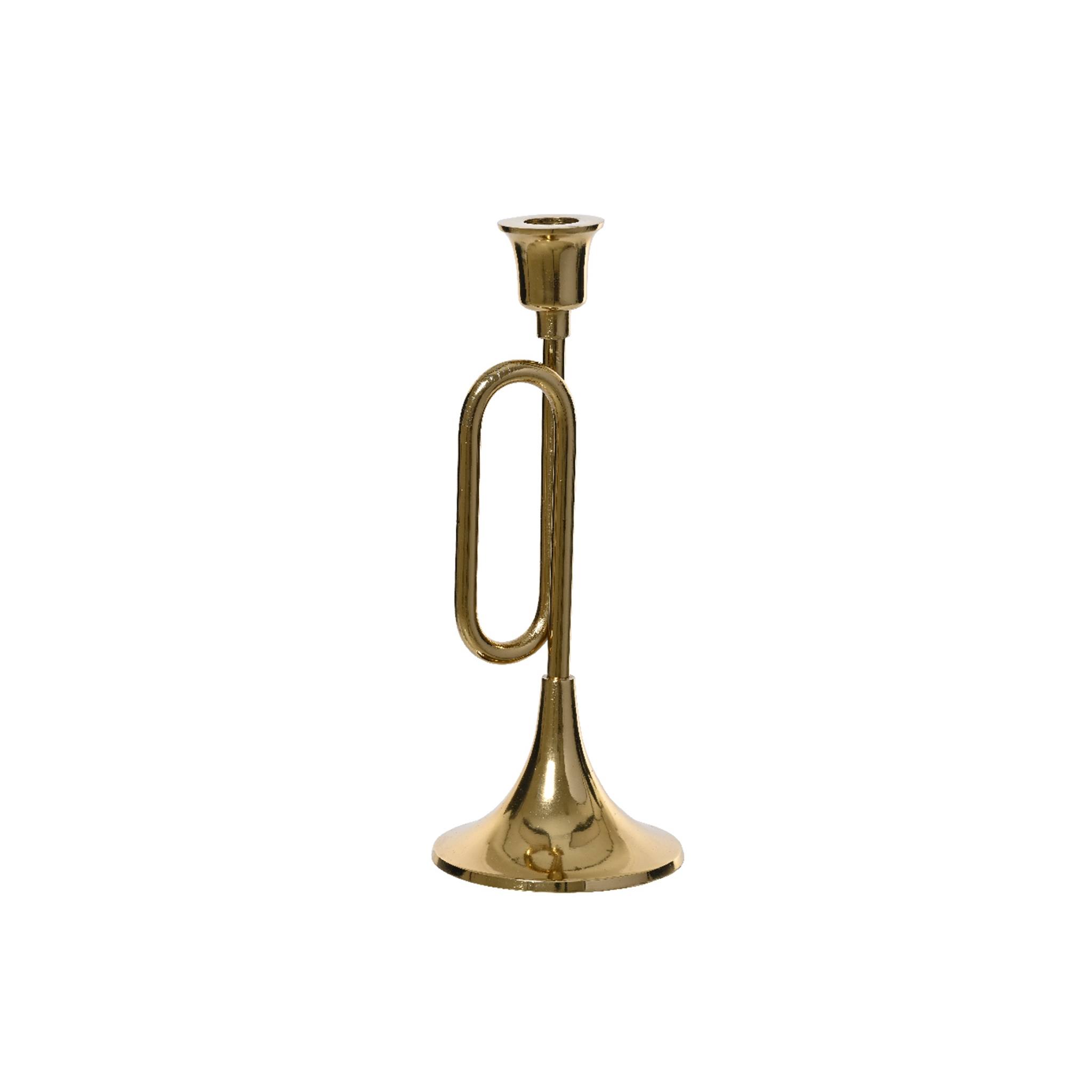 Kovový svietnik na kónickú sviečku TRÚBKA zlatý 27 cm
