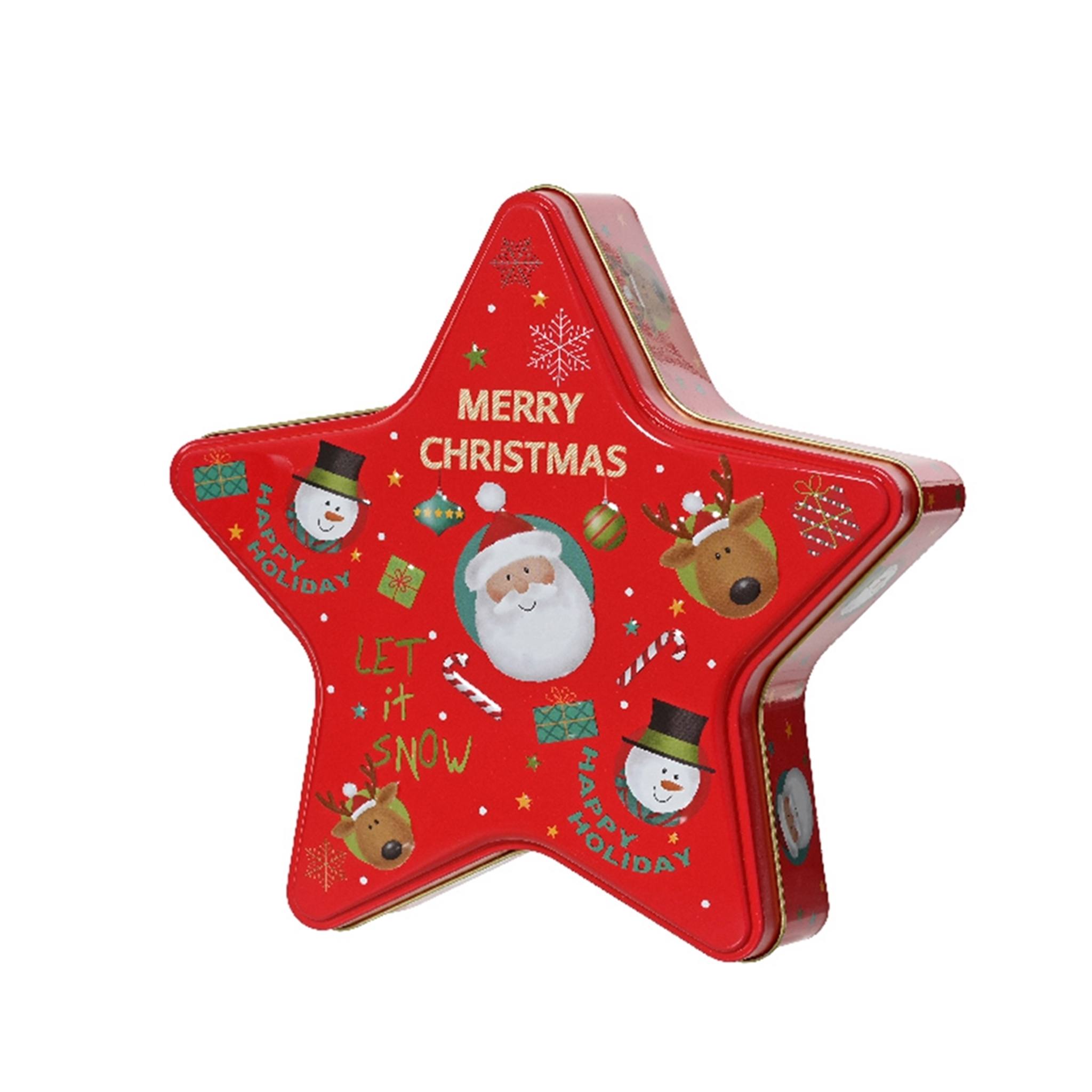 Plechová krabica – hviezda – MERRY CHRISTMAS – červená 19x18x5 cm