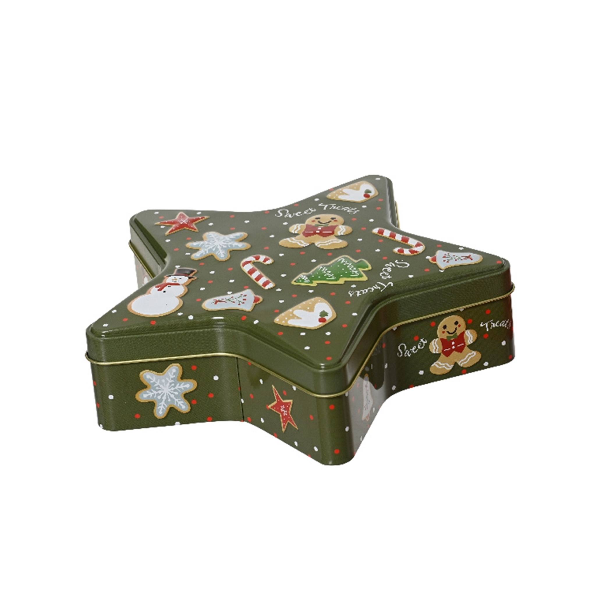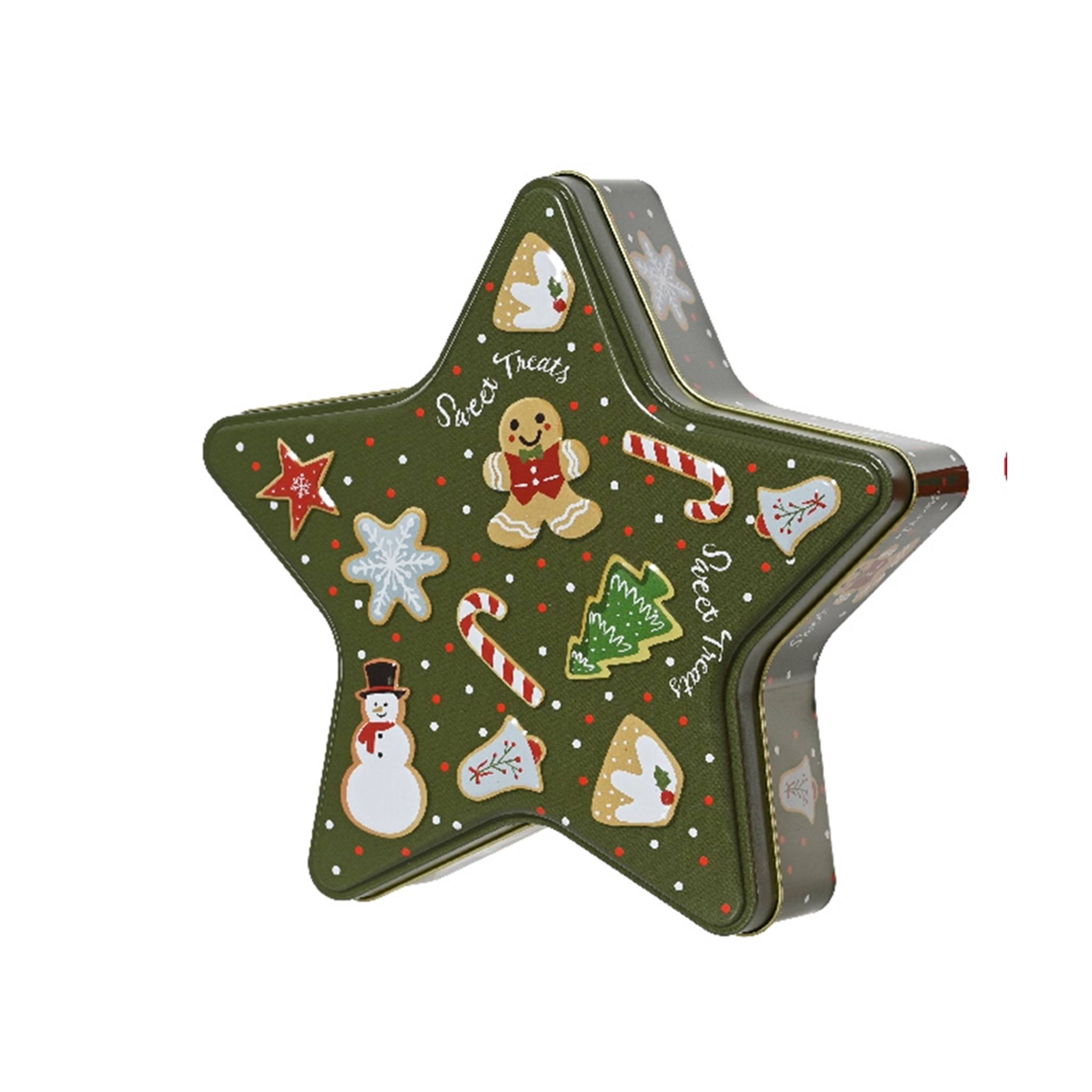 Plechová krabica – hviezda – SWEET TREATS – zelená 19x18x5 cm