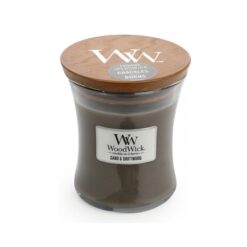 Woodwick vonná sviečka s arómou Piesok a Naplavené drevo.
