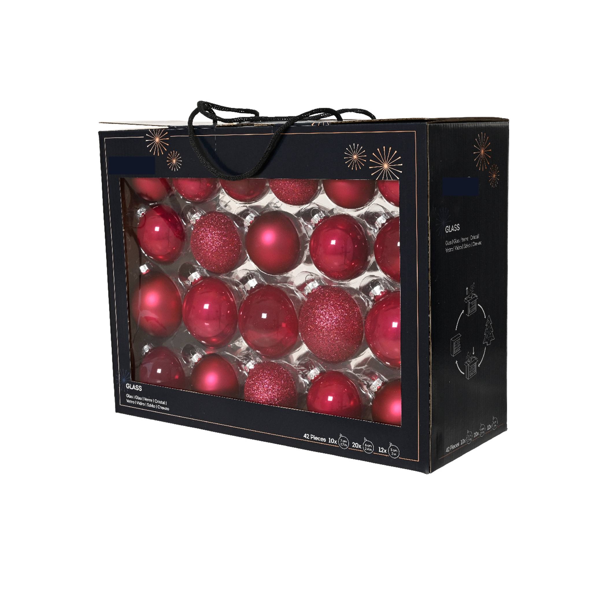 Set vianočných gulí – malinová – lesklá+matná+priesvitná+trblietavá – 42 ks
