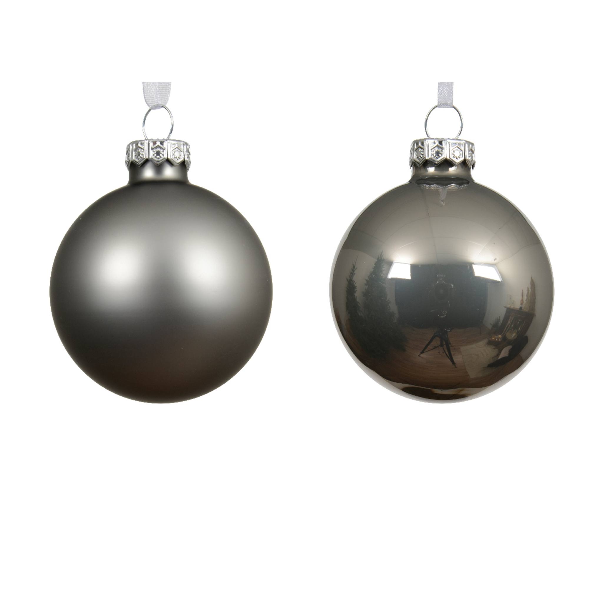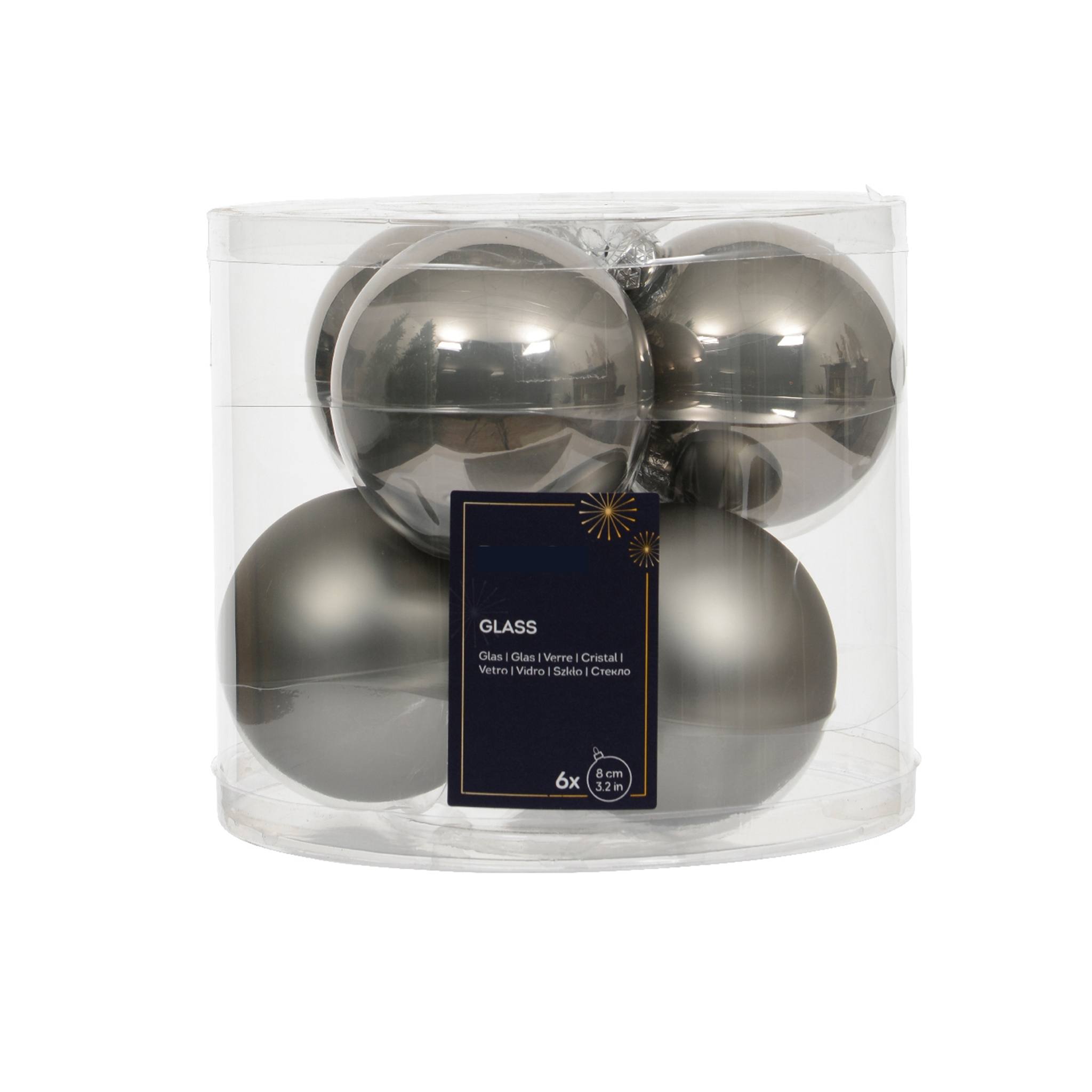 Set vianočných gulí – sivá – lesklá+matná – 6 ks 8 cm