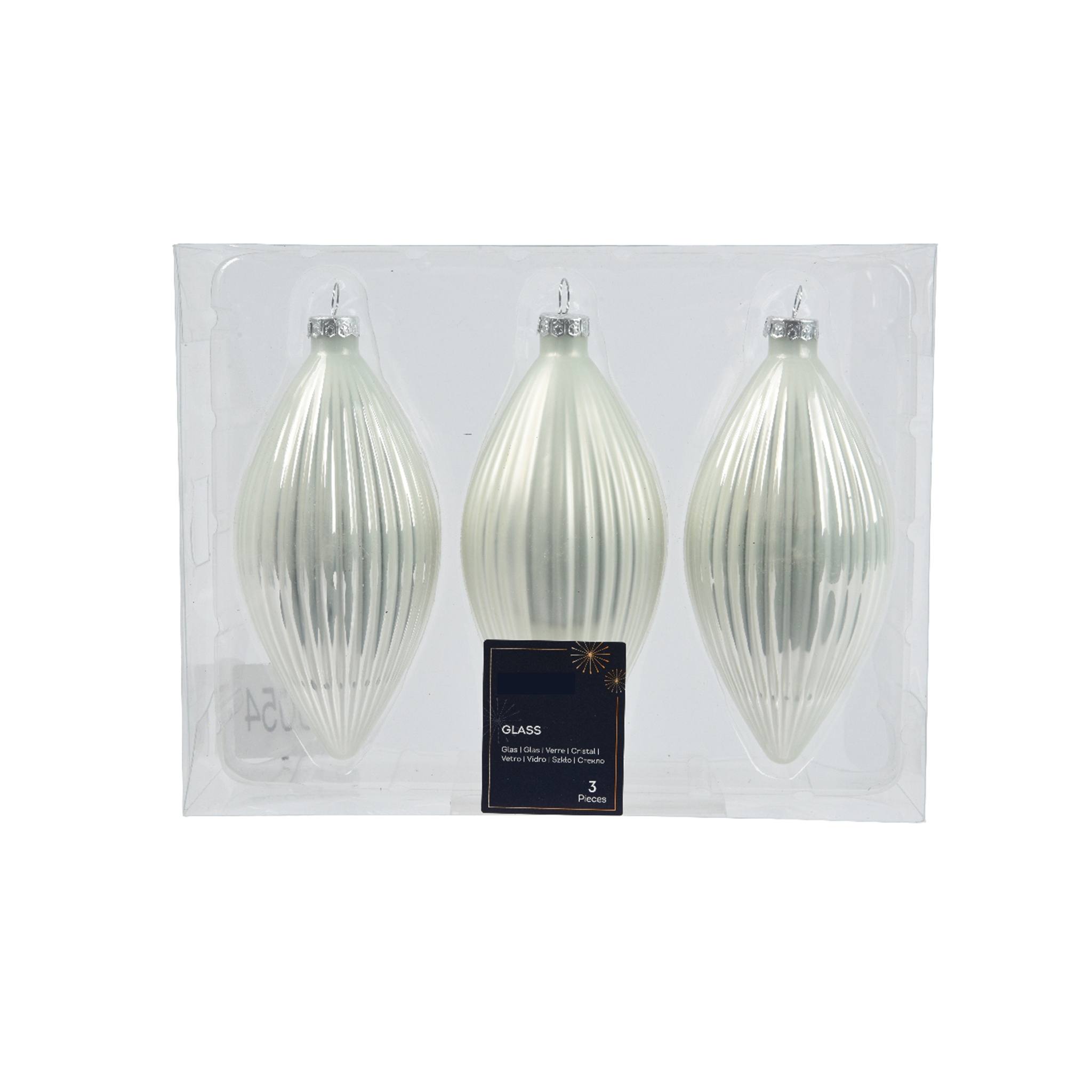 Set vianočných ozdôb – studená biela – 3 ks 6×13 cm