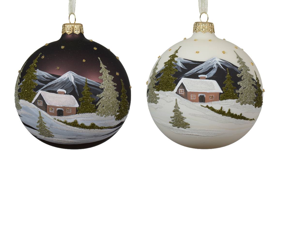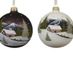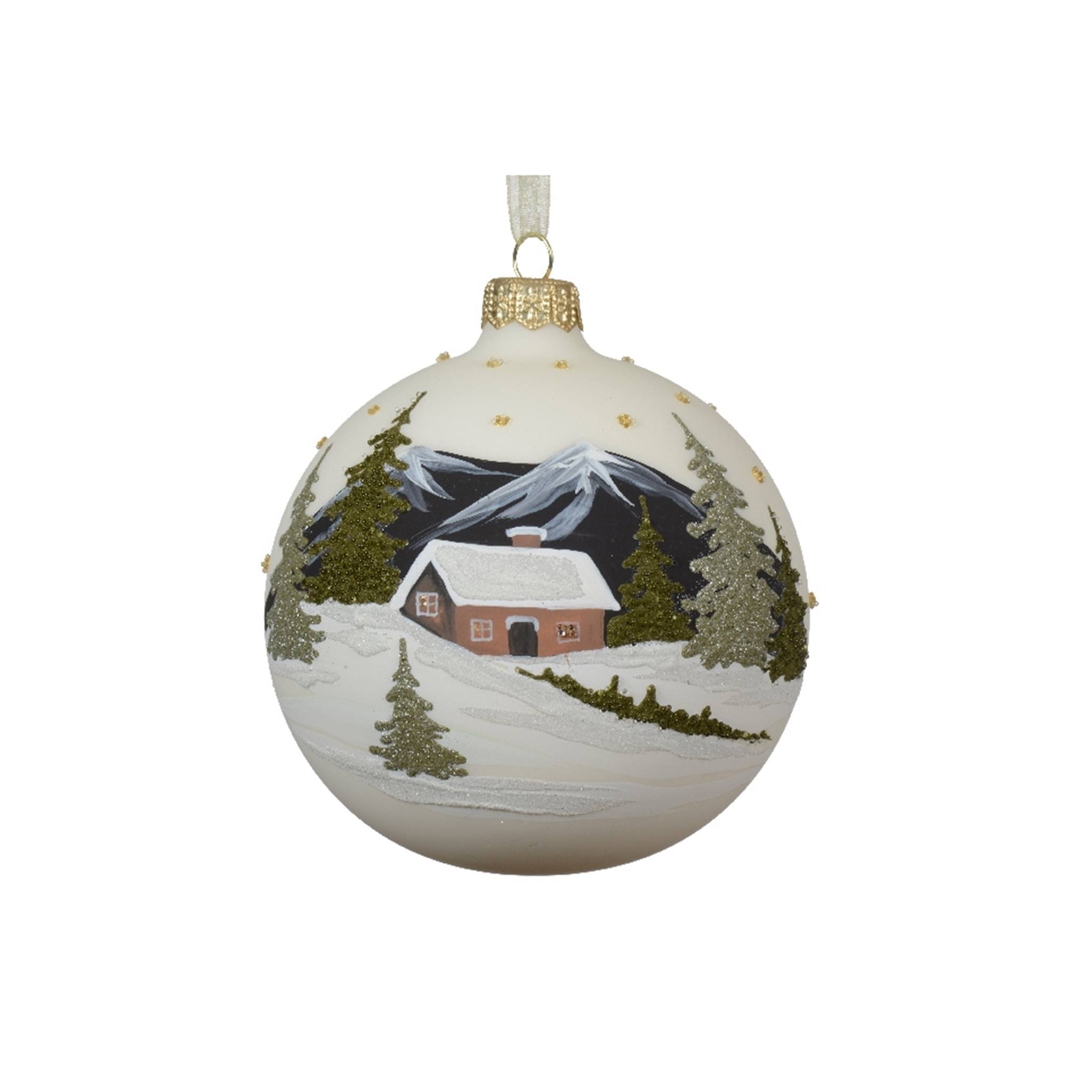 Sklenená vianočná guľa DOM V HORÁCH biela 10 cm