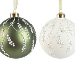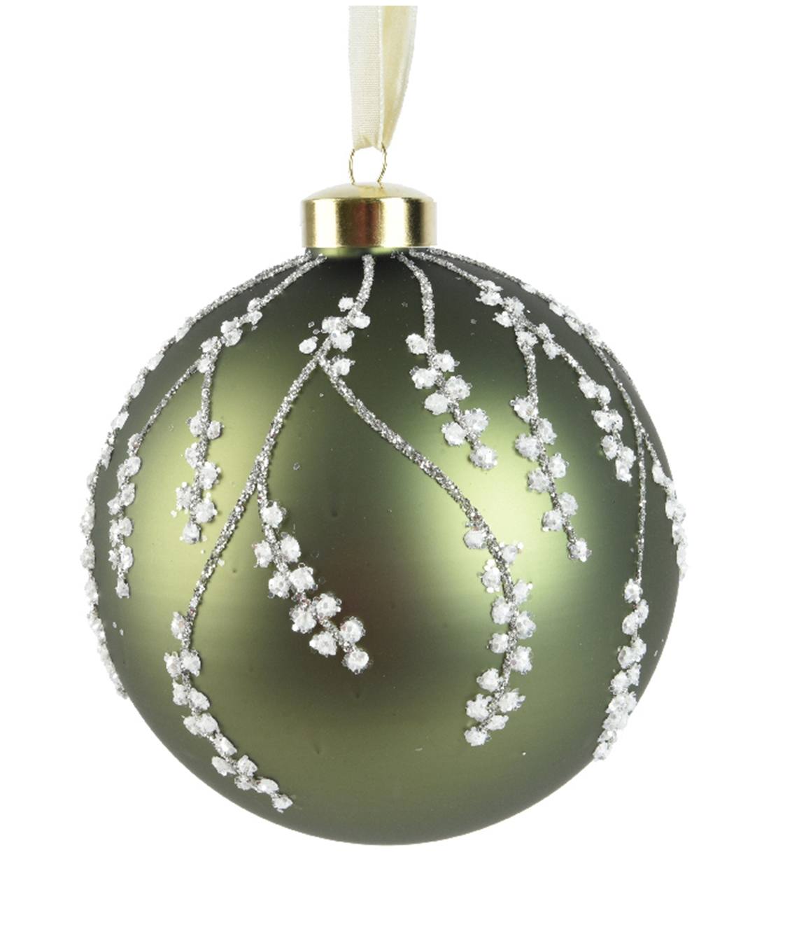 Sklenená vianočná guľa – matná tmavozelená so zdobením – 15 cm