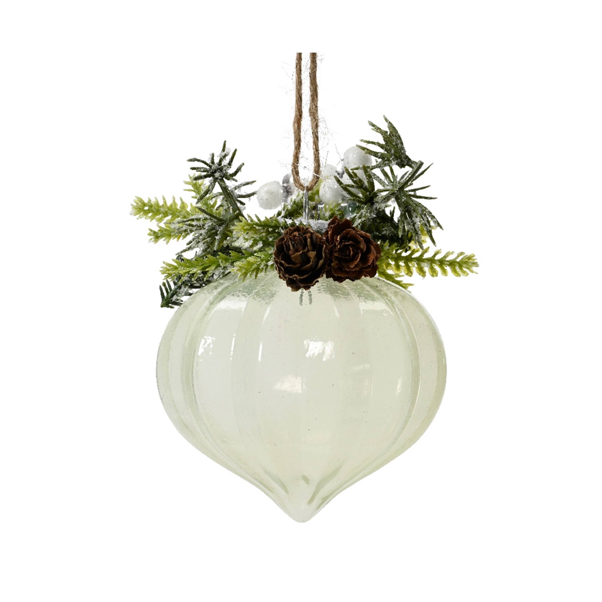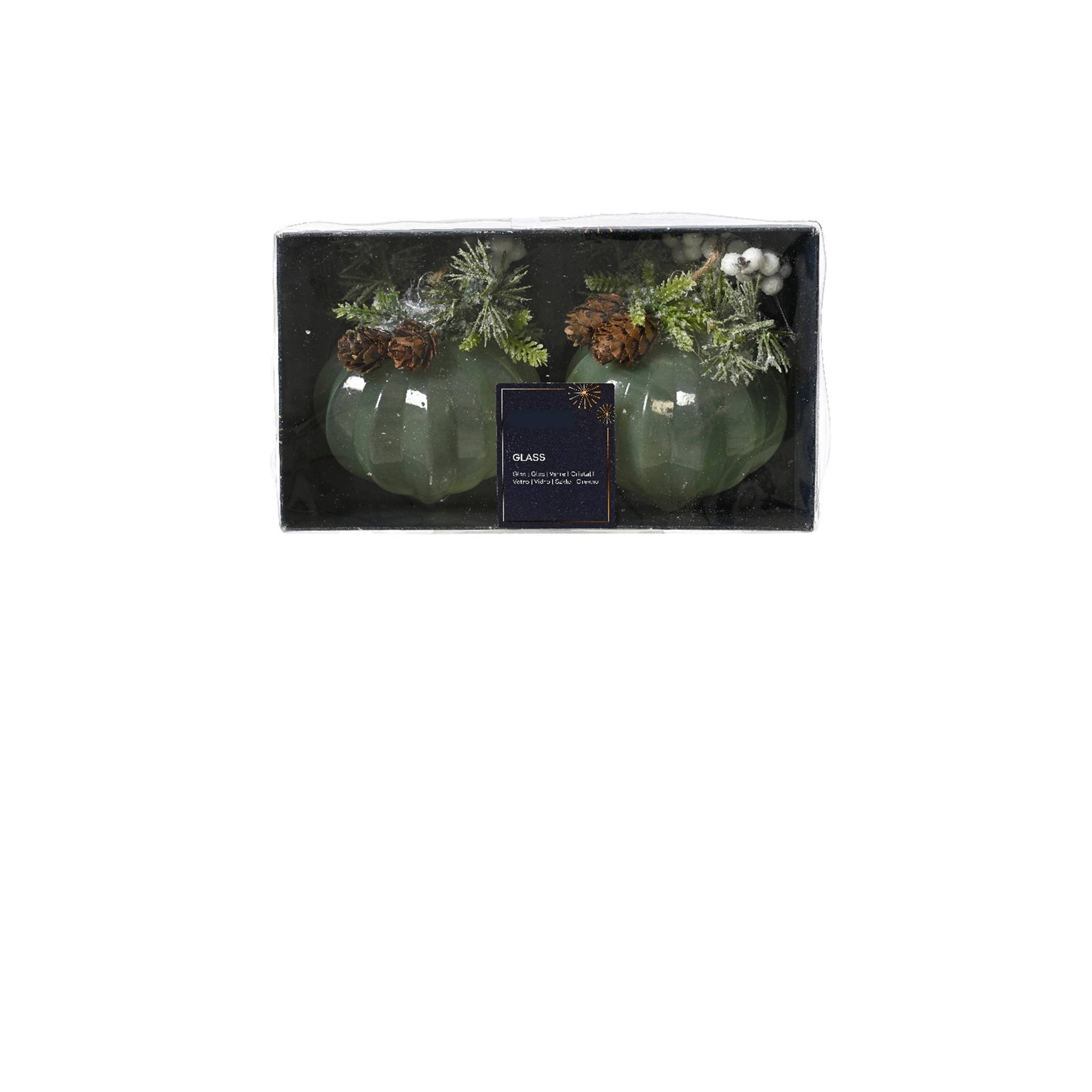 Sklenené vianočné gule s ihličím – set 2 ks – zelená 8 cm