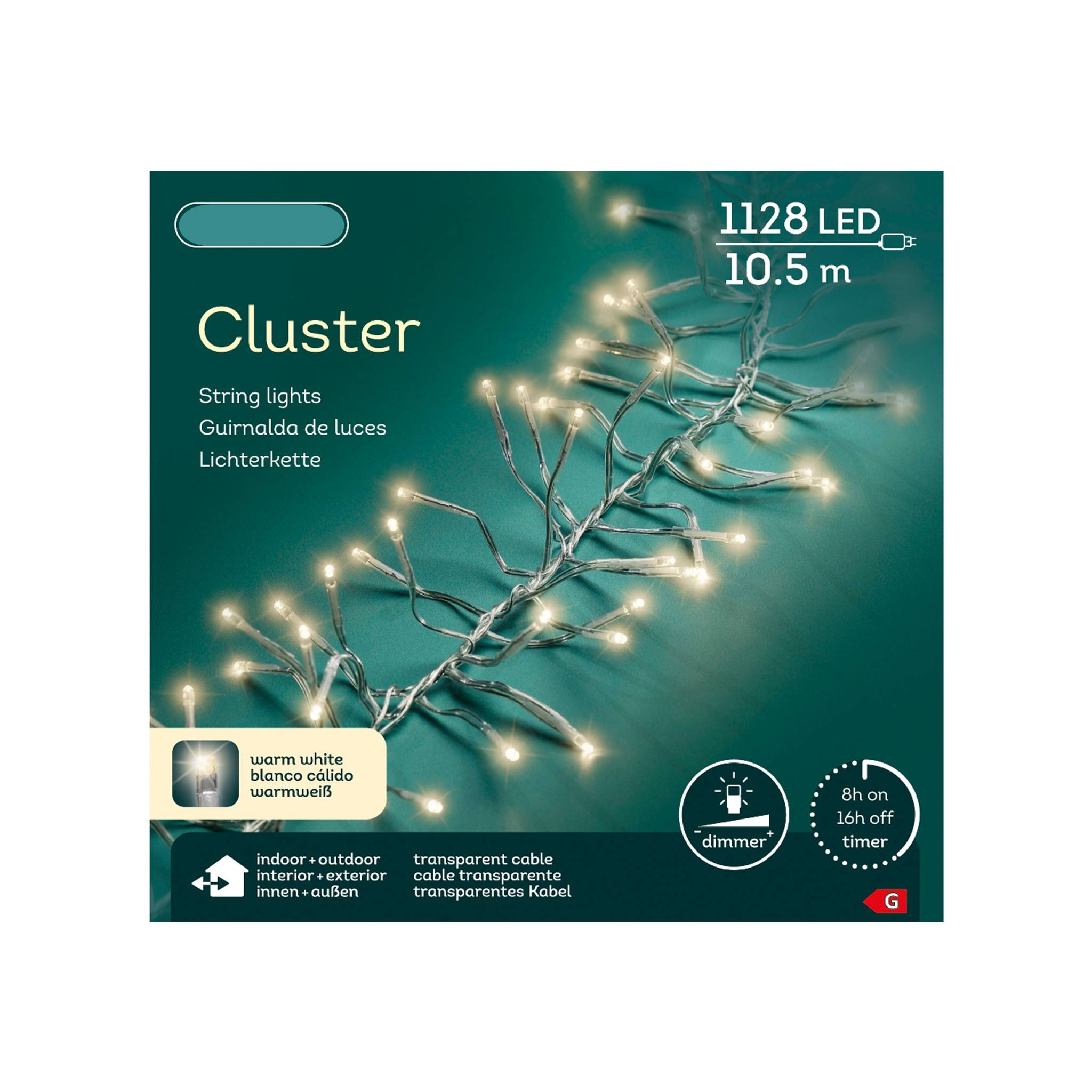 Svetelná reťaz 10,5 m – strapcová – 1128 LED warm white – transpar. kábel