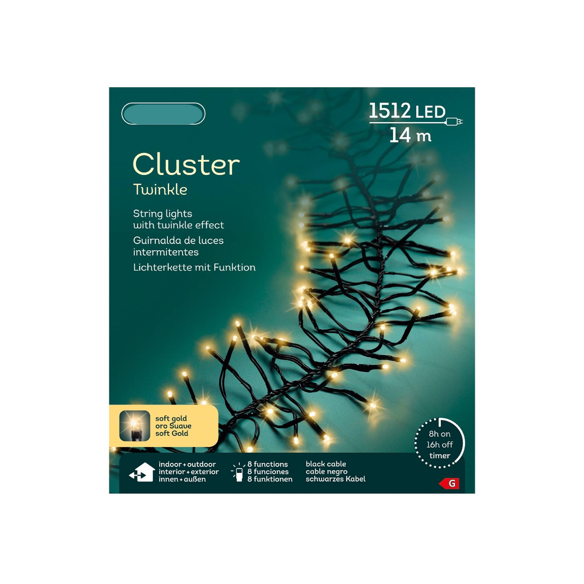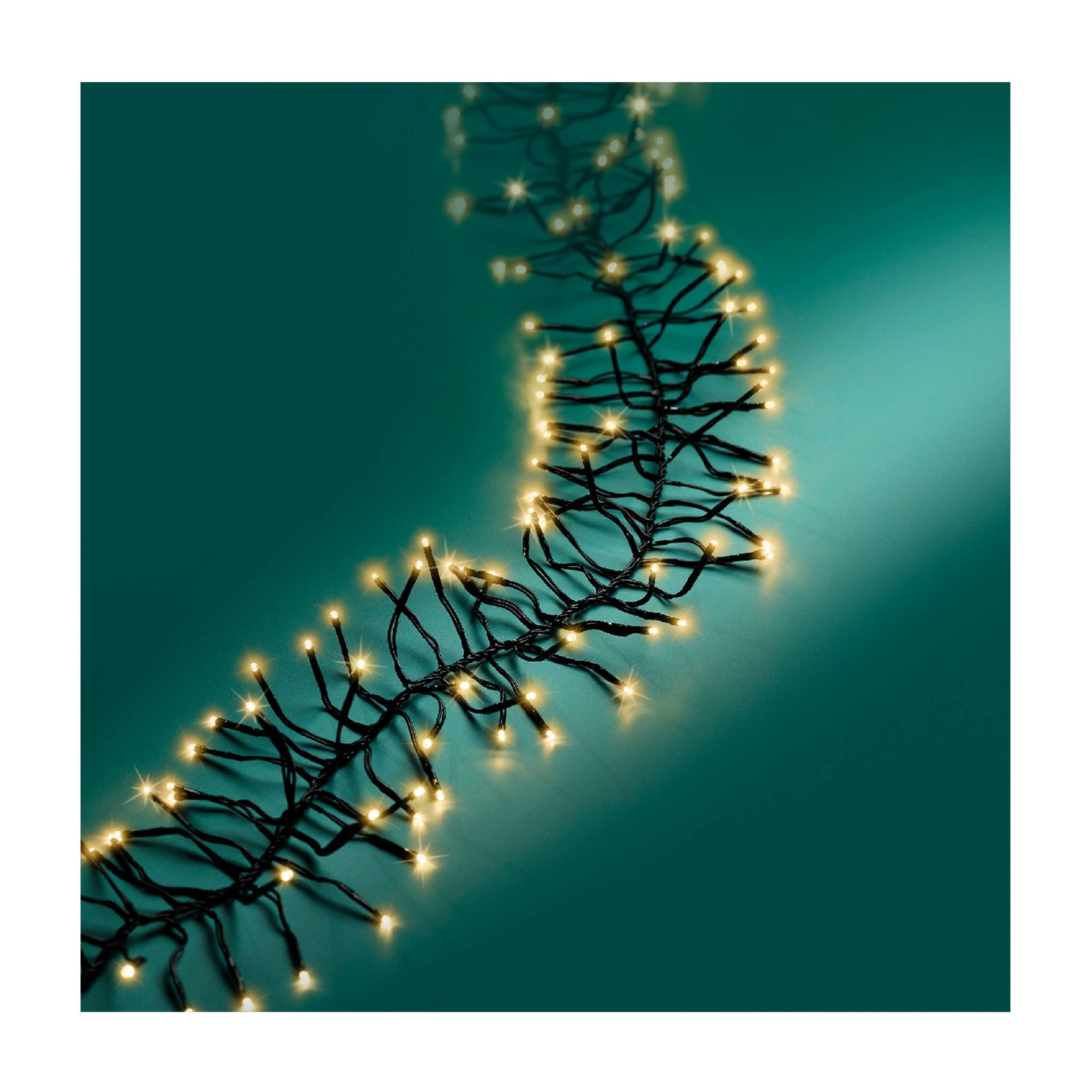 Svetelná reťaz 14 m – strapcová – 8 funkcií – 1512 LED soft gold – čierny kábel
