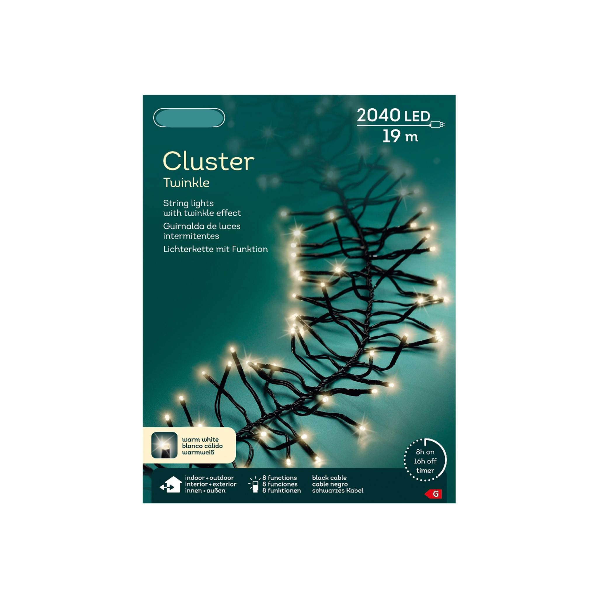 Svetelná reťaz 19m – strapcová – 8 funkcií – 2040 LED warm white – čierny kábel