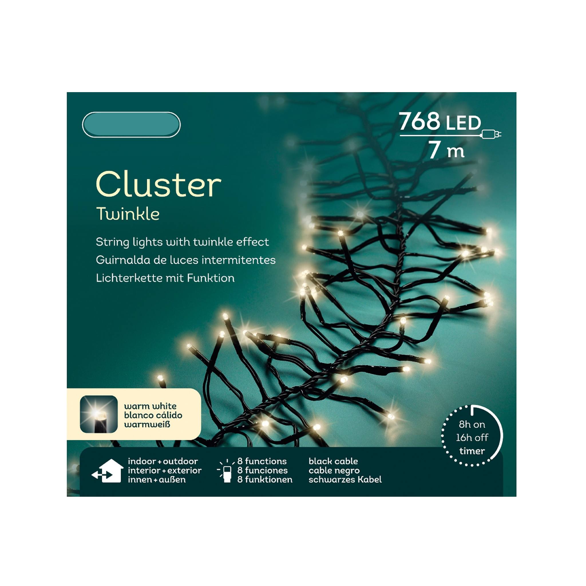 Svetelná reťaz 7 m – strapcová – 8 funkcií – 768 LED warm white – čierny kábel