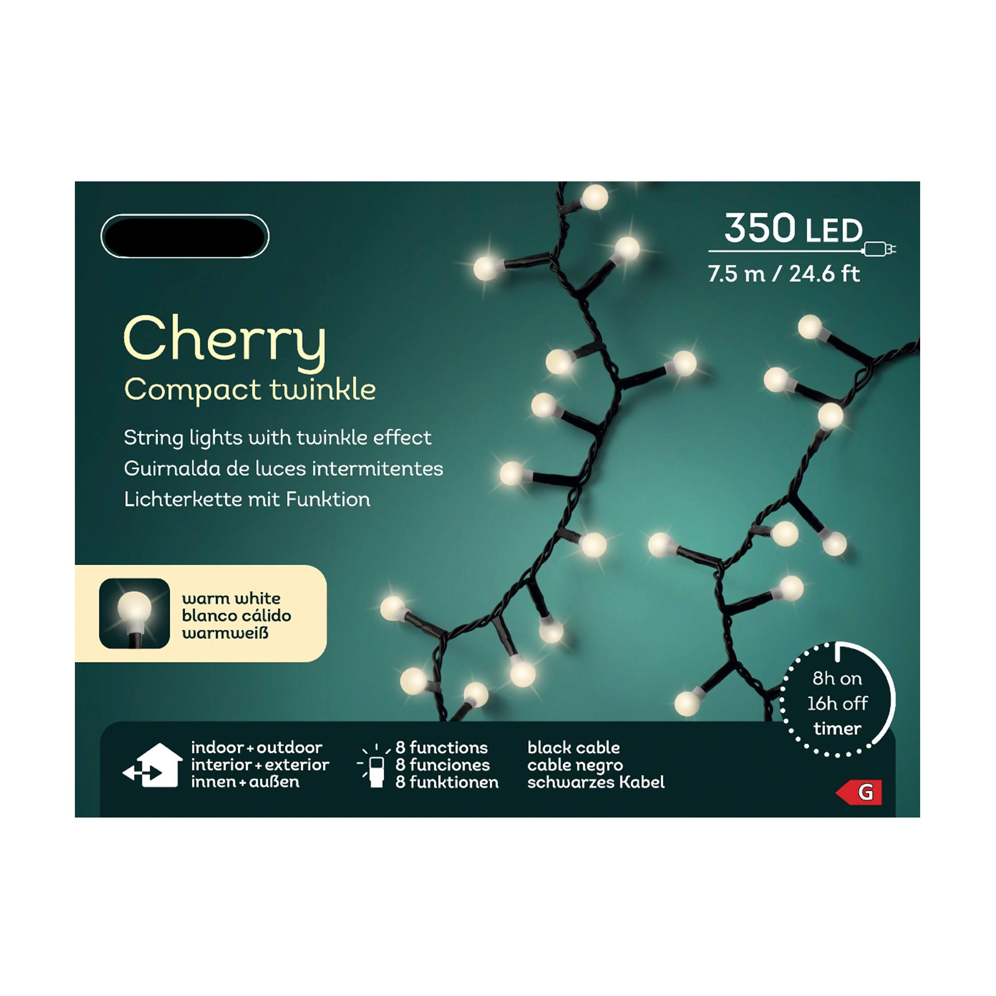 Svetelná reťaz CHERRY 7,5 m – 8 funkcií – 350 LED warm white – čierny kábel