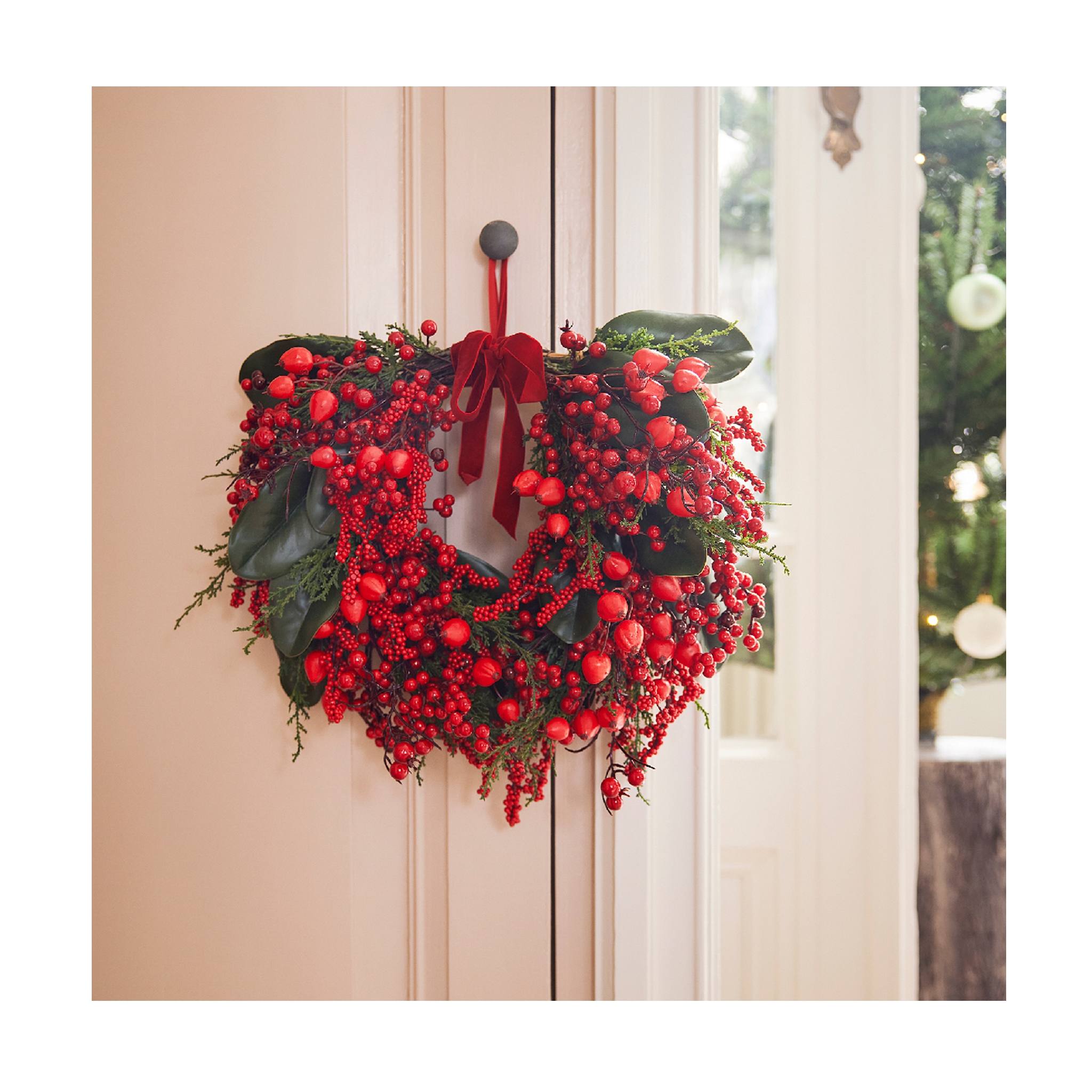 Umelý čečinový polveniec so stuhou – RED BERRIES – 40×13 cm