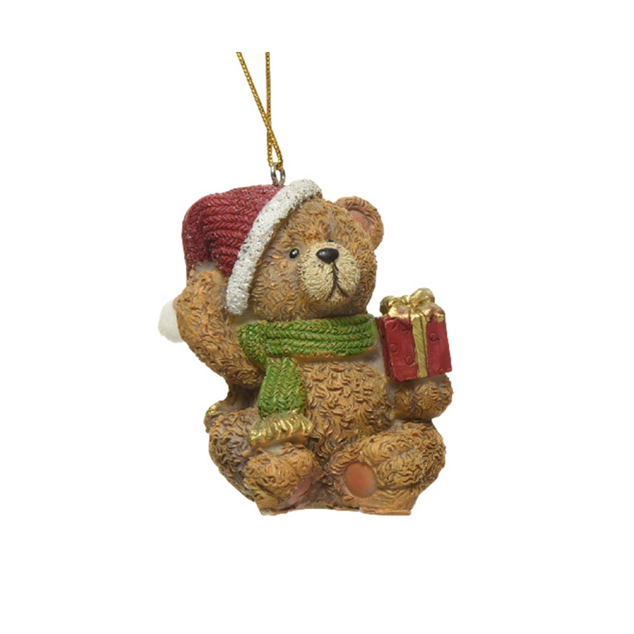 Vianočná ozdoba na zavesenie – MACKO S DARČEKOM – 4×6 cm
