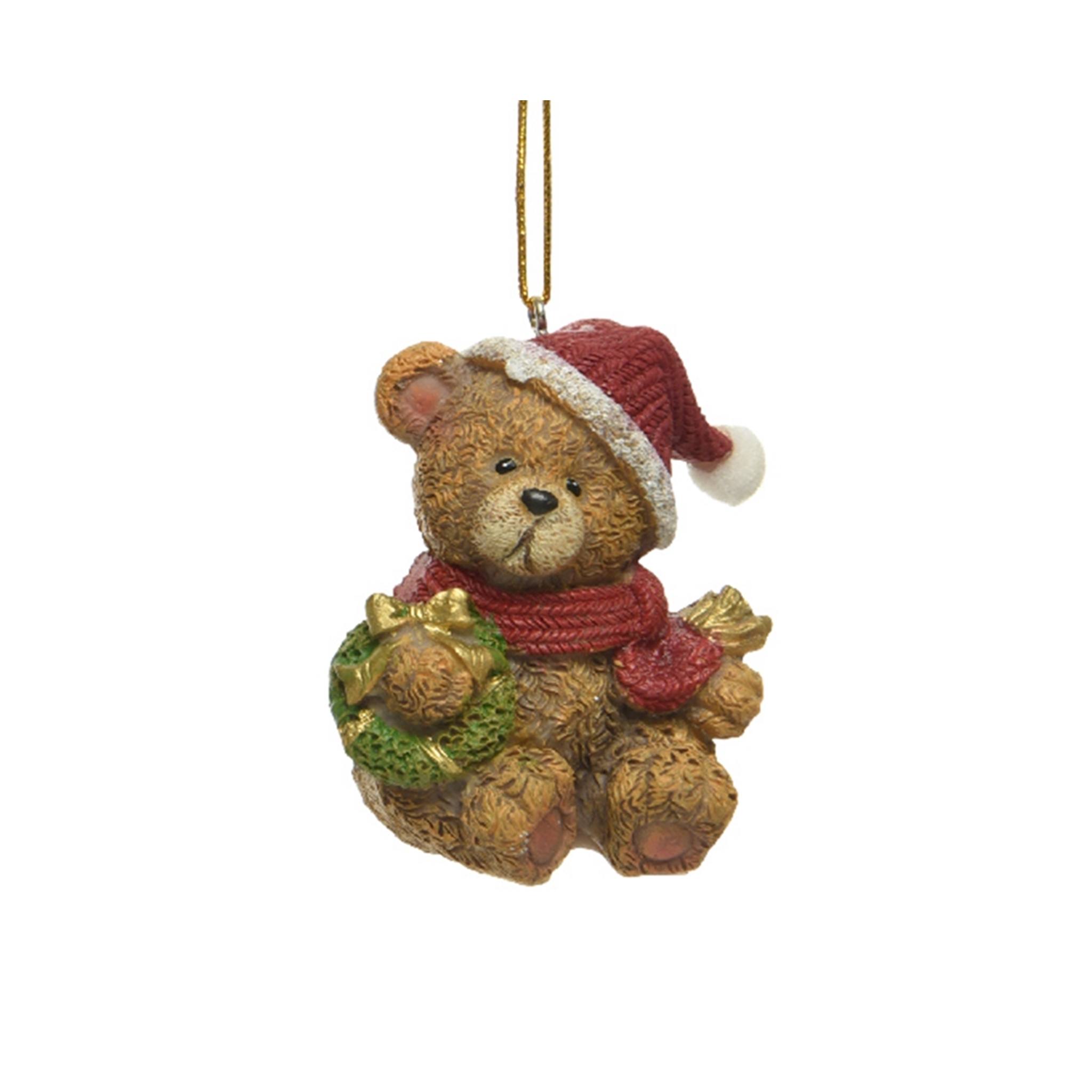 Vianočná ozdoba na zavesenie – MACKO S VENCOM- 4×6 cm